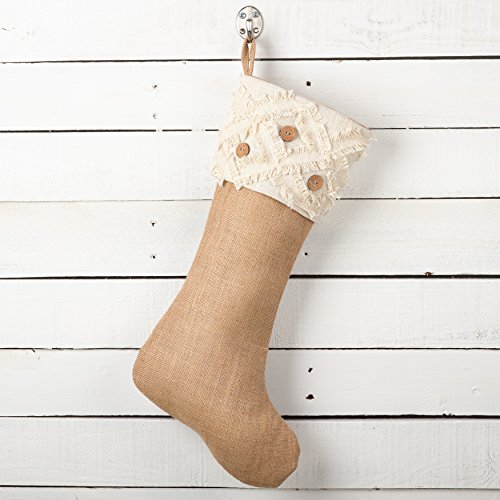 Fennco Styles Fringe Button Design Decorative Jute Christmas Stocking -13"x19"