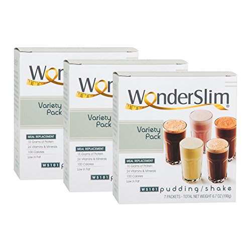 WonderSlim Meal Replacement Shake / High Protein Shake / Diet Shake & Pudding Mix (15g Protein) - Variety Pack (7 Servings/Box) 3 Box Value-Pack (Save...
