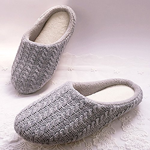 ChicNchic Unisex Soft Cozy Fuzzy Knit House Slippers with Anti-slip Sole