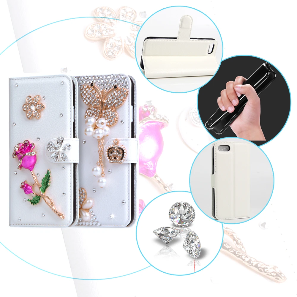 Material:Litchi Pattern PU leather + Plastic + Rhinestone Diamond