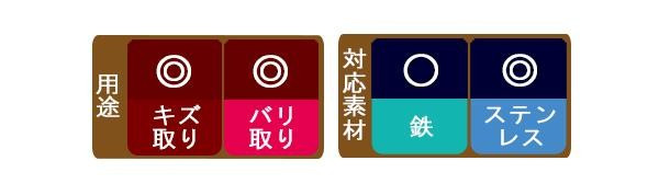 | 金属をはじめ石材、ガラスへの対応が可能です。中研磨に最適です。目詰まりが少なく、焼けが生じにくいディスクです。 |