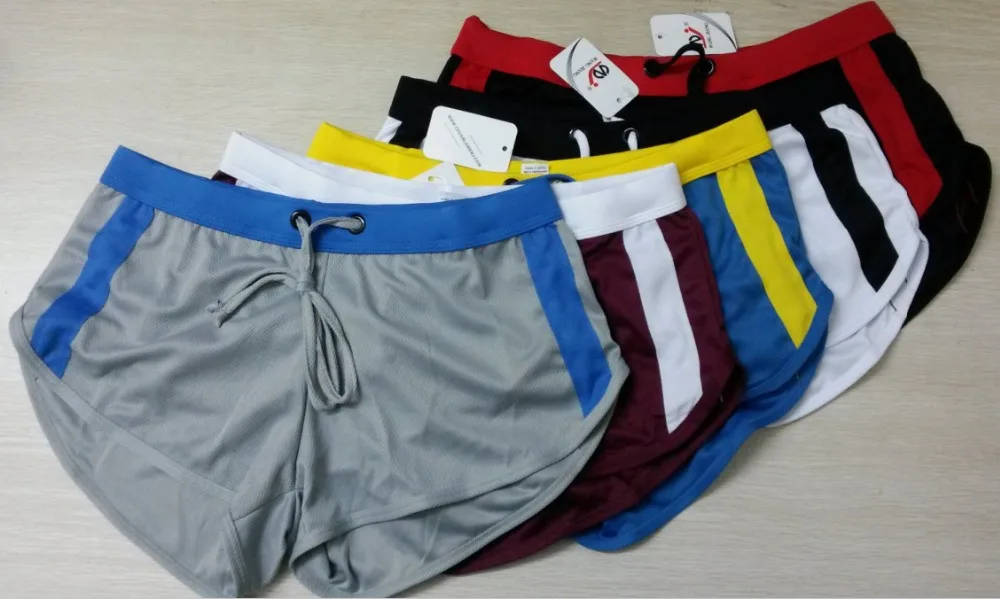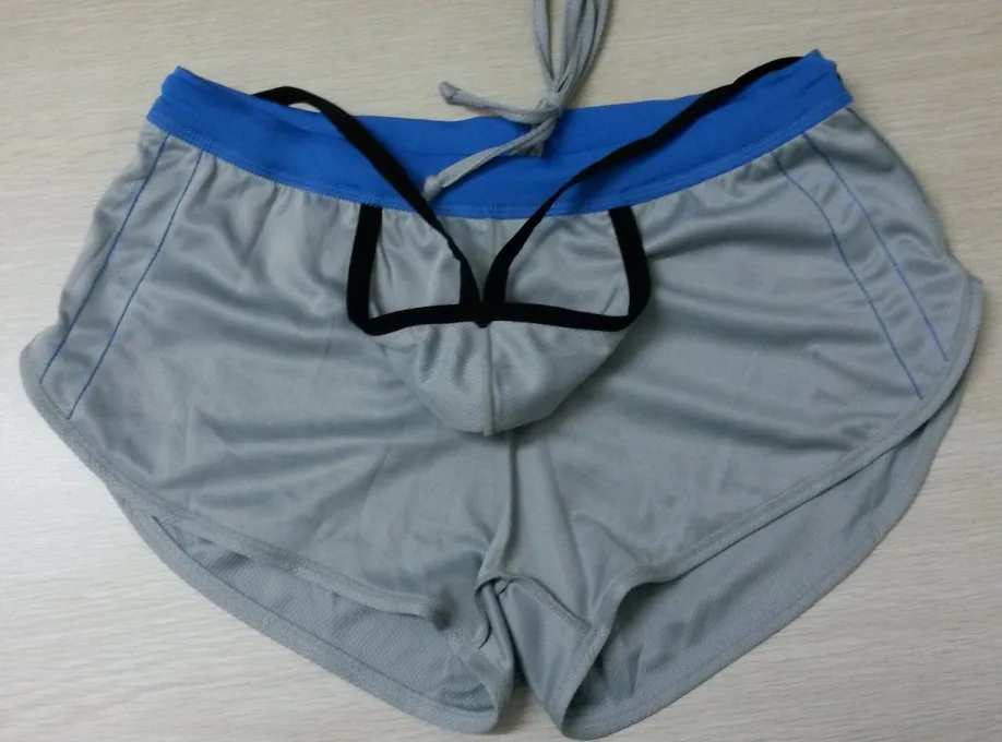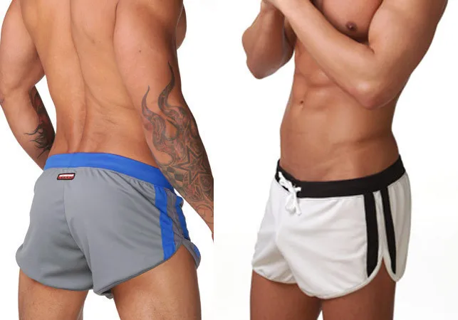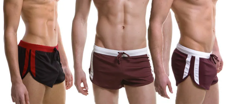 features:sexy thong pouch in,quick dry men sport gym running beach shorts