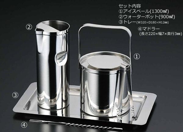 | セット内容 | アイスペール(1300ml) ウォーターポット(900ml) トレー(W320×D180×H12mm) マドラー(長さ220×幅7×奥行3mm) |