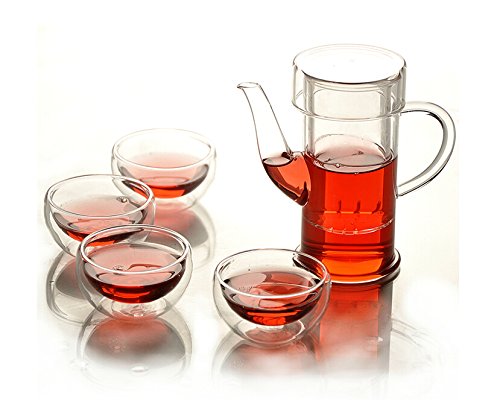 -. Title : Heat-resistant glass tea set 1 glass tea pot 4 Double-deck glass cup