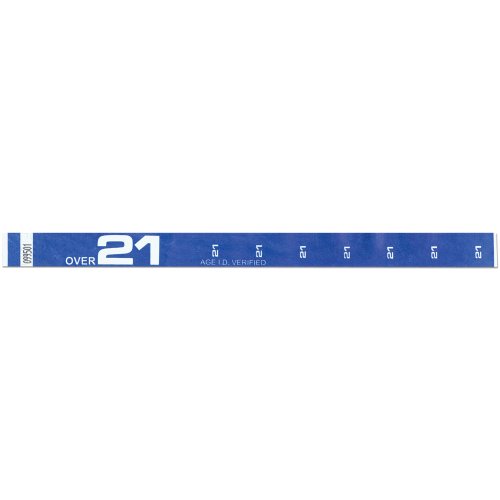 -. Binding : Office Product -. Brand : Precision Dynamics -. Color : Blue -. EAN : 0633090590757 -. Feature : Width 3/4" / Expressions wristbands feature fun, colorful pre-P.R.Inted designs that your guests will love!.Rotate colors and designs for different days of the week to keep your admissions secure / Made of DuPont® Tyvek® which is economical, water-resistant, and comfortable. / One size fits all. Strong adhesive closure with tamper-resistant feature that shreds if tampered with. Wristbands are serial numbered. -. HazardousMaterialType : Unknown -. Label : Precision Dynamics -. Manufacturer : Precision Dynamics -. Model : NXT61-13-PDM -. MPN : NXT61-13-PDM -. PackageQuantity : 500 -. PartNumber : NXT61-13-PDM -. ProductGroup : Office Product -. ProductTypeName : OFFICE_PRODUCTS -. Publisher : Precision Dynamics -. Studio : Precision Dynamics -. Title : Tyvek Wristbands - Over 21 P.R.Inted - Bar - Night Club - Alcohol Serving Events - Blue Color - 500 Pieces of Wristbands per Box -. UPC : 633090590757