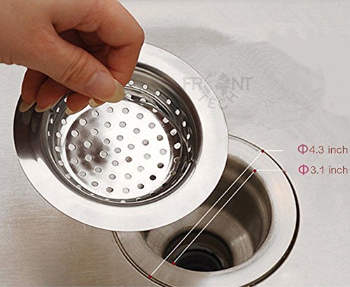 Kitchen Sink Strainer, FrontTech Stainless Steel 4.5 inches Diameter Sink Drain-Pack Of 2 (with Handle)