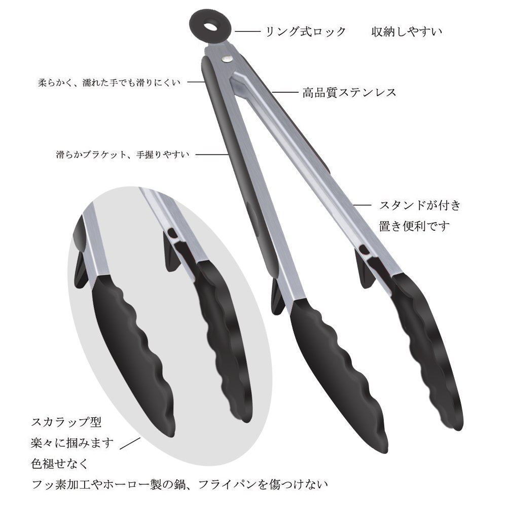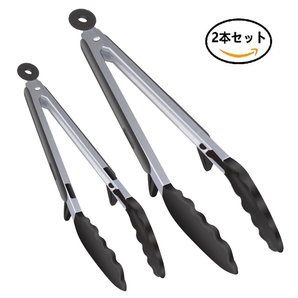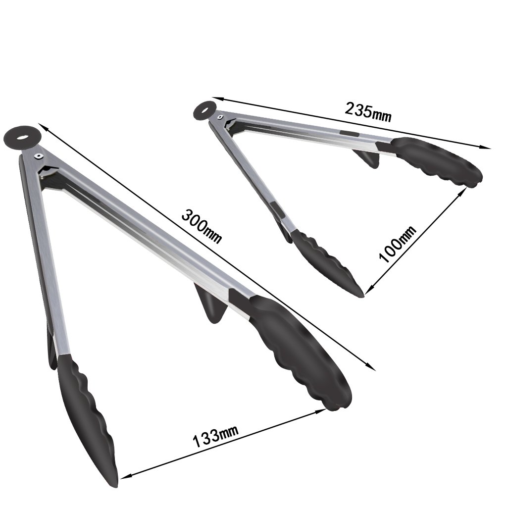 Kitchen tongue, universal silicone tongue for cooking 23.5 cm and 30 cm set Heat resistant antibacterial with stand (black)
