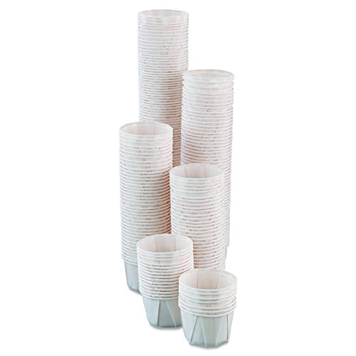 This SOLO 200-2050 2-oz. white paper souffle portion cup measures 2.1 x 1.4 inches (Dia x H) and is suitable for use as a serving container or as a measuring cup. (Dia is diameter, the horizontal distance from one side to the other; H is height, the vertical distance from bottom to top.) The cup is treated for resistance to liquid penetration and can be used in hot or cold applications. It meets ASTM International standard D6868 for compostability. This white paper souffle portion cup is suitable for use in hot and cold food service and food preparation applications.