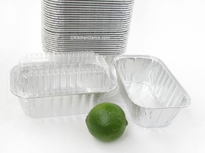 Great little pan for individual size portions, food gifts, and in gift baskets. Travels well. Good for breads, fruit cakes, meat loafs, apple cakes, carrot cakes, pound cakes, banana nut bread and so on; also think of it for serving garnishes such as celery and carrot sticks, olives, and for dips; great for cookies. Made in USA. Top outside dimensions (rim to rim): 6-1/8" x 3-3/4" Top inside dimensions: 5-9/16" x 3-1/4" Depth: 2" 30 gauge aluminum foil Capacity: 15 fluid ozFeature