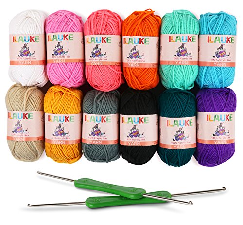 Features: Economy, 100% Acrylic, 12 assorted fashion colors without duplicates. Soft, durable and no fade. Coming with 2 crochet hooks(in random colors), ideal for beginners, knitters and crocheters. Save your money.
