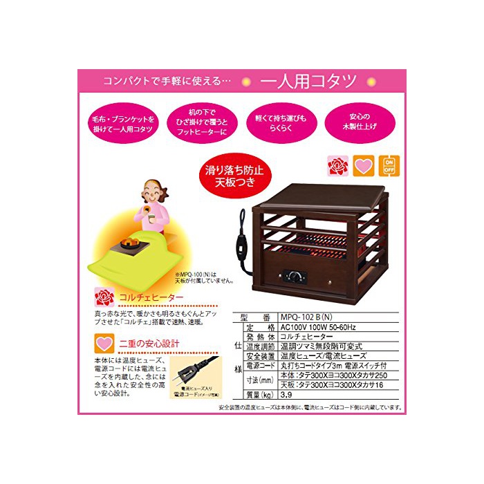 원본상품명: メトロ(METRO) 一人用こたつ(滑り落ち防止天板付) コルチェヒタ搭載 MPQ-102B(N)