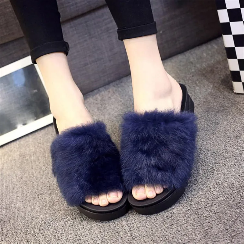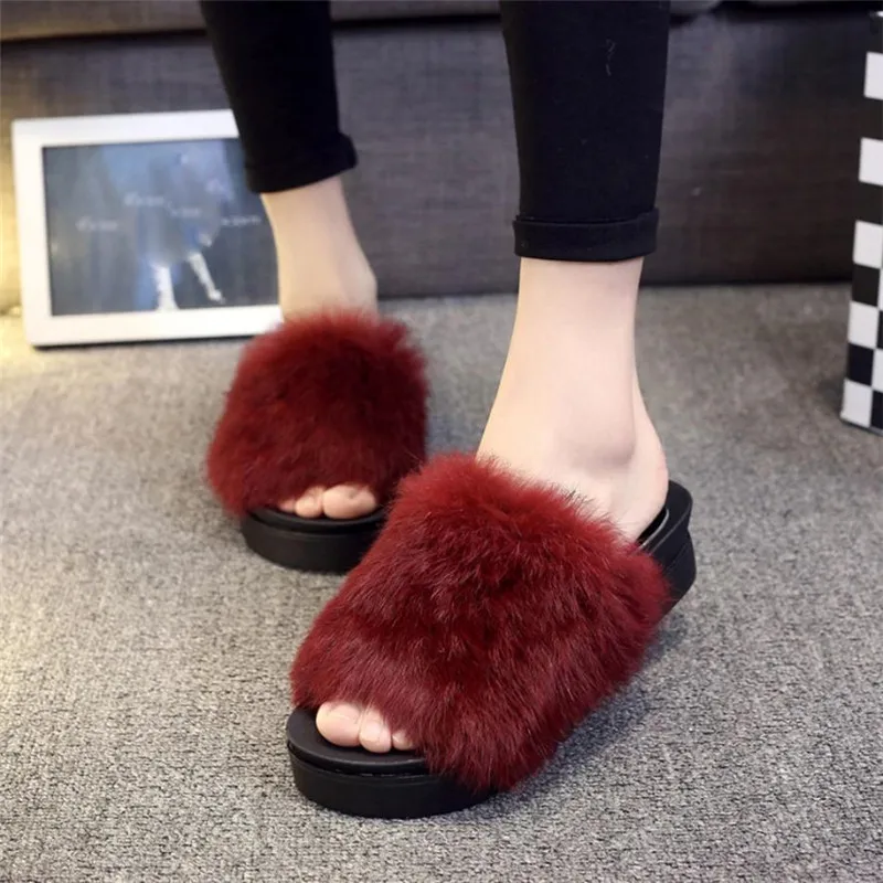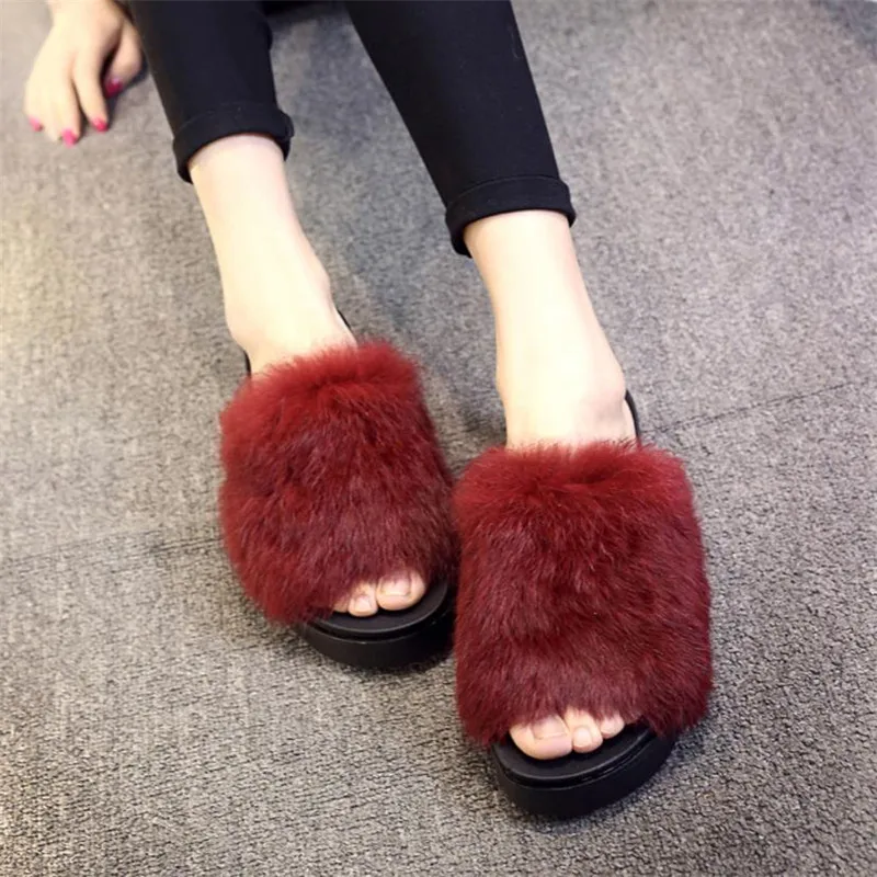 flip flops: fur slippers