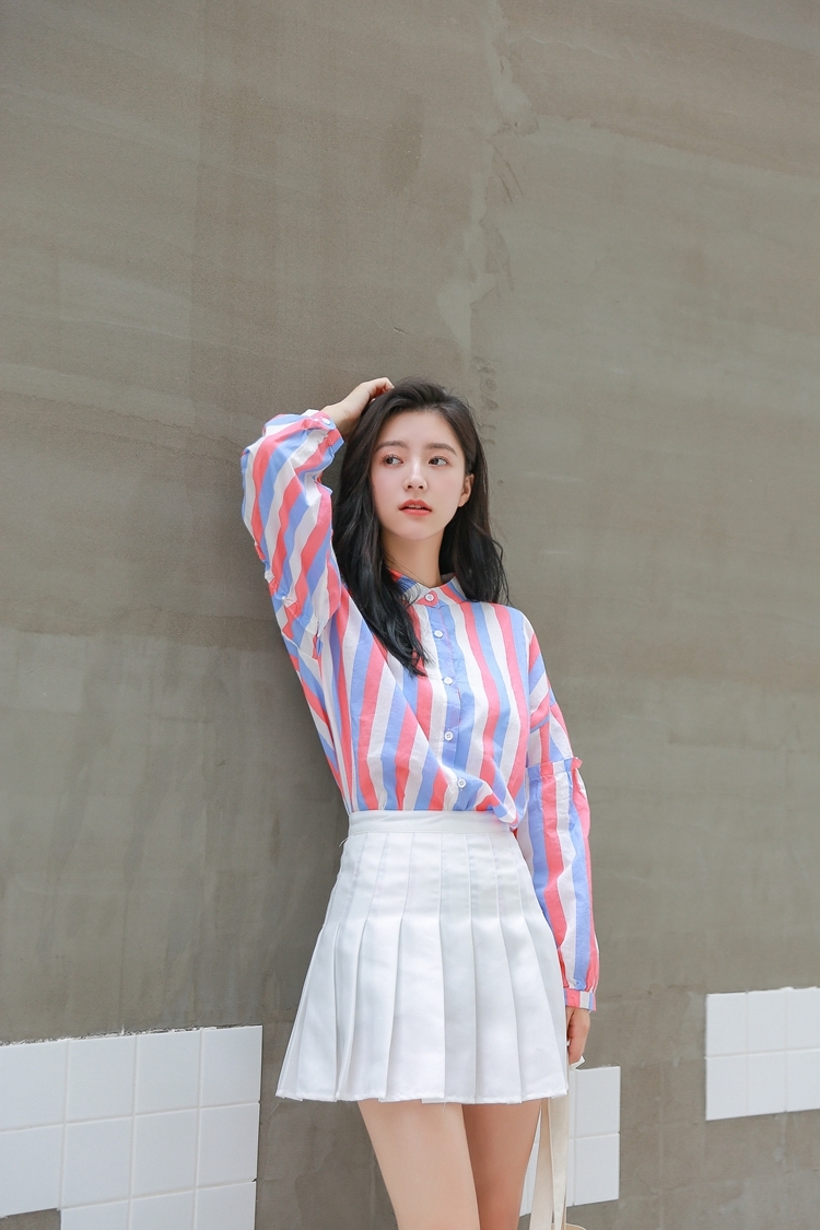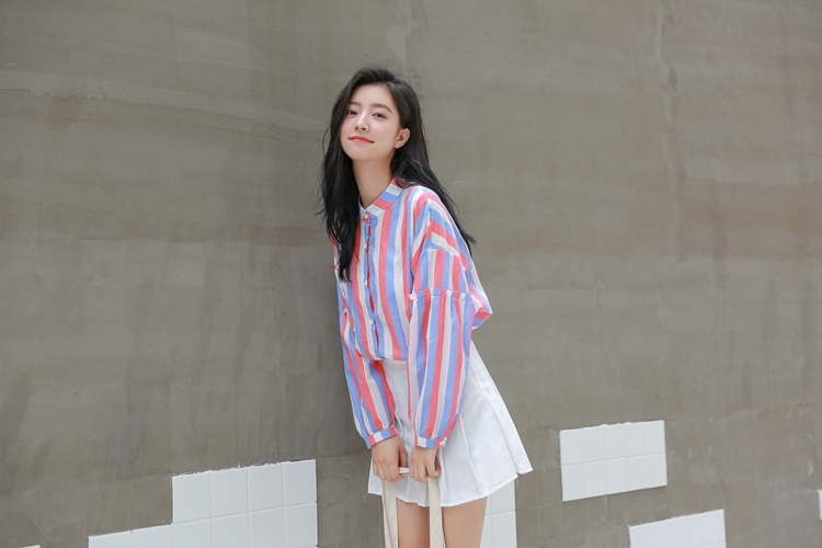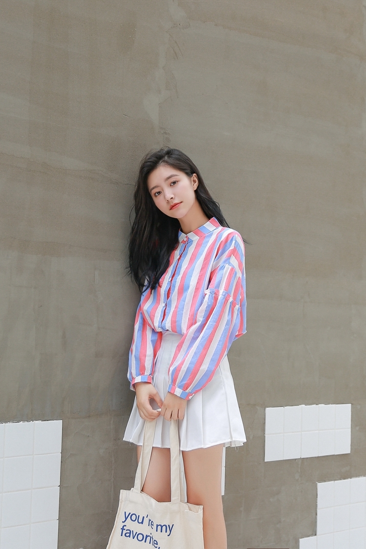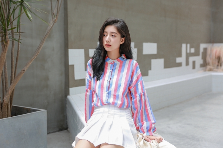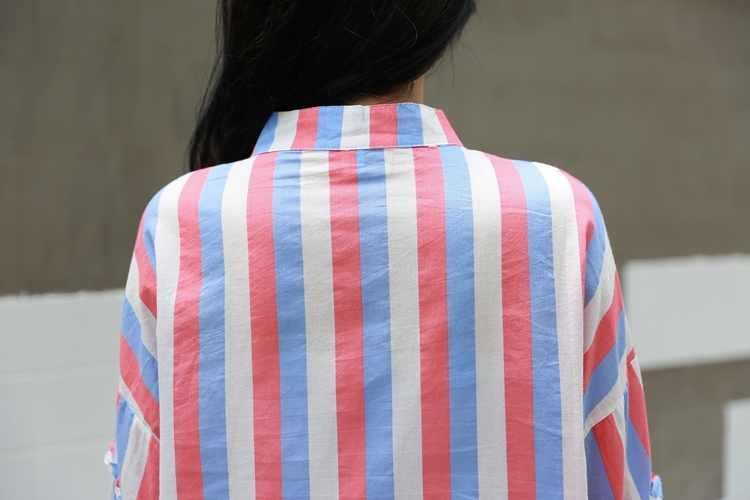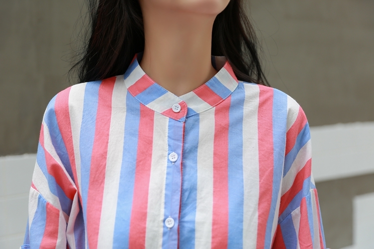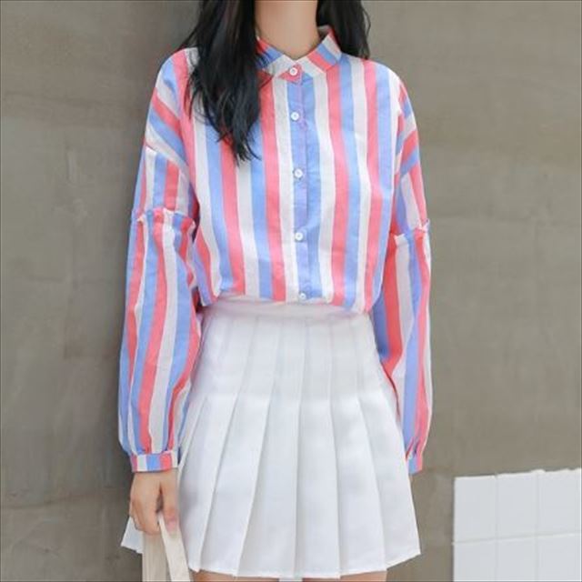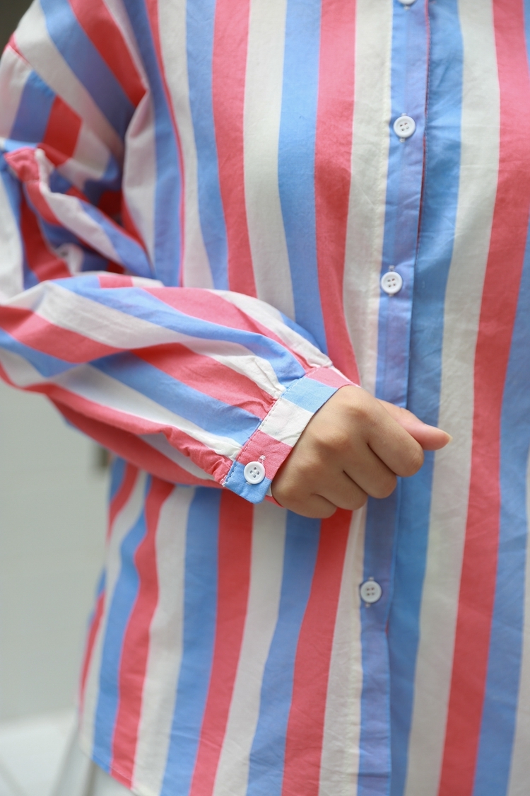春らしい配色のマルチストライプがトレンドのバンドカラーシャツのご紹介です。