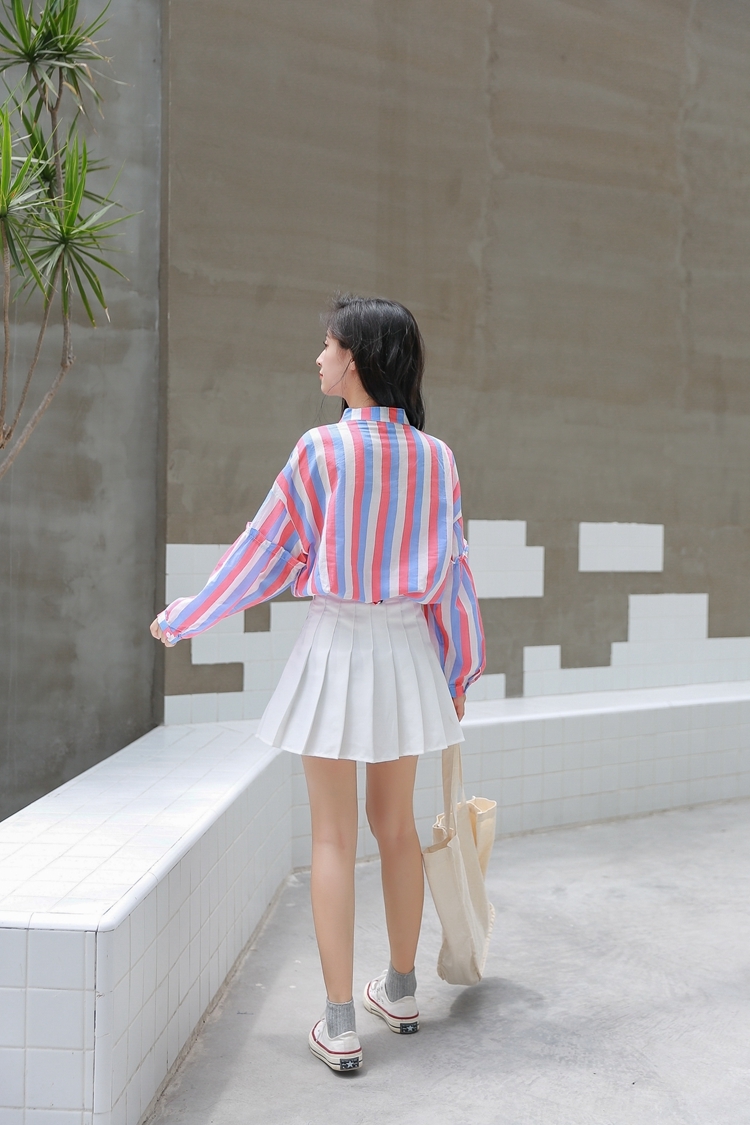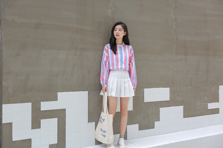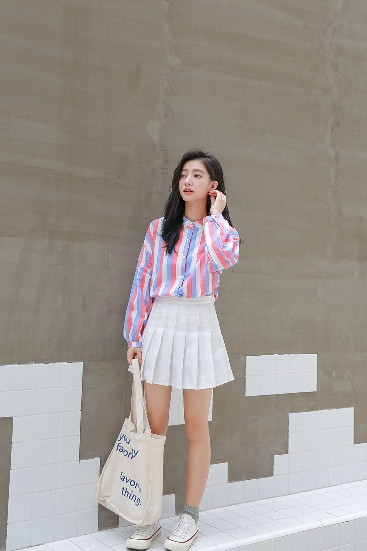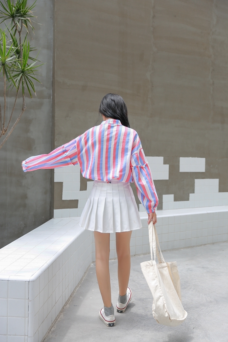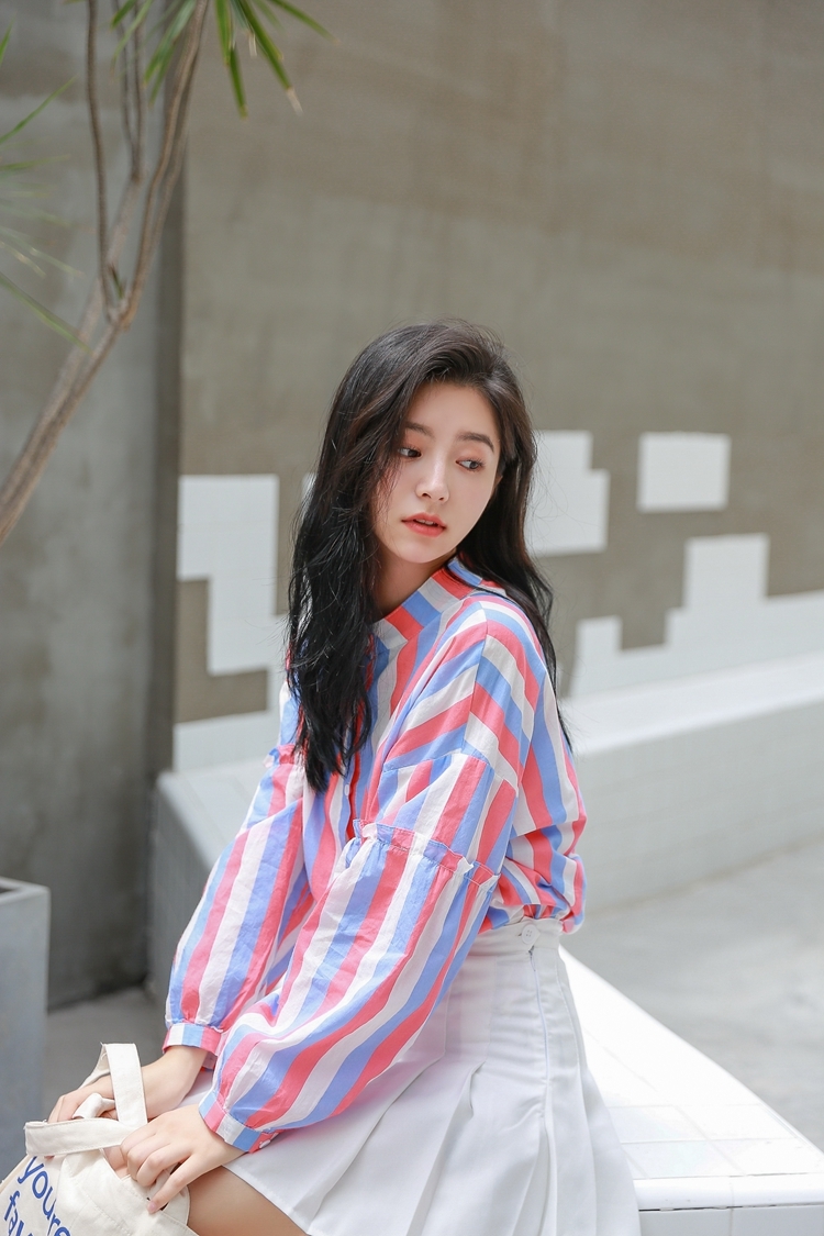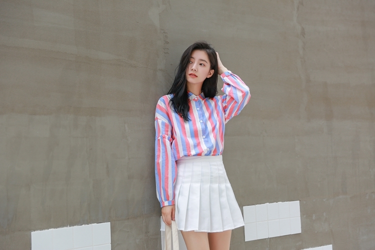 春らしい配色のマルチストライプがトレンドのバンドカラーシャツのご紹介です。