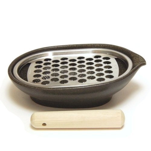 -. Feature : 60mm height 205 × width 145 × length (Safety confirmed by inspection of the Japan Food Hygiene Association) adhesive seal material: grater: stainless steel / vessel: pottery / pestle: wood / non-slip I use a special stainless blade sharp or the grater. Blade of five who are on hole finish by adjusting one by one to the optimal spacing angle (45 degrees) to take down such as radish, the blade attached to only half of the hole, the size of the hole also fell the most food easy to size (11 × 13mm). ※ Shinko-sha made Of pottery vessel (body) is to design with the attraction to be able to give in the same dining table. With a non-slip bottom, the function of mortar such as Sesame grated yam, long potato. Maker of hardware and creator of pottery met, radish instrument of ultimate was completed do not tolerate compromise. Iga ware pottery Hase Ceramics (Hase Garden) made