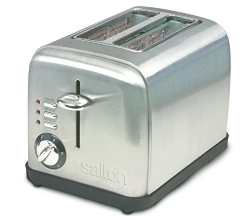 Salton''s stainless steel 2 slice electronic toaster accommodates a wide variety of breads including bagels, breakfast foods and more. Control the level of browning with a variable 6 position control and electronic sensor will ensure consistent browning results. 1-1/2'' wide slots with guides are self-adjusting and will automatically center your bread. Also features indicator lights and easy touch control buttons for defrost, reheat and cancel function. Use the extra carriage lift for easy removal of smaller slices. Includes an auto-jam safety shut off and removable crumb tray for easy cleaning. 2 year warranty.