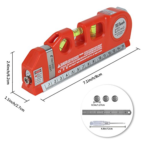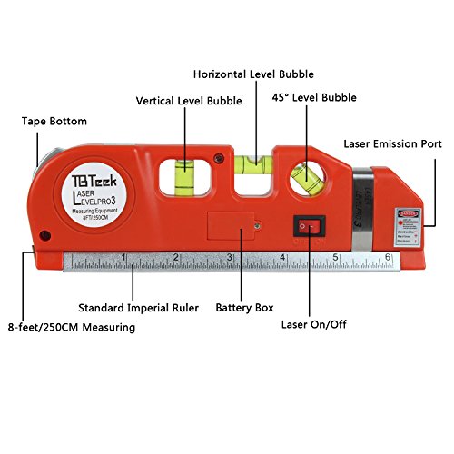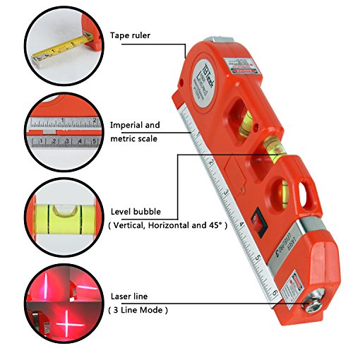 TBTeek Multipurpose Line Laser Level Tape Measure 8ft/2.5M Adjusted Standard and Metric Rulers + Laser Horizon Vertical Measure Line (Red)