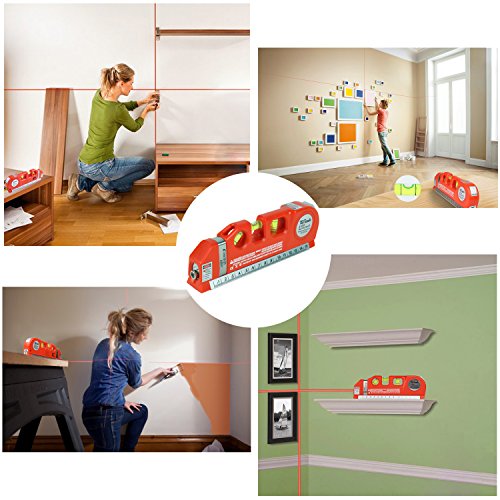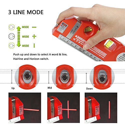 - ✔ 3 MODE LASER and 8-FOOT Accurate Measuring Tape: Integrated A word & line, Hairline and Horizon, designed for any situation where a straight line or accurate measurements are needed. Equipped with an 8-foot measure with graduations down to 1/32 inch and 1mm.