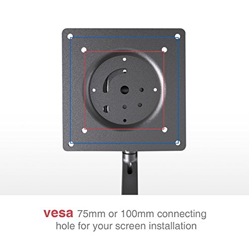 Compatibility: The monitor arm works with almost any LCD monitors. The weight limit for suspending the monitor is 19.8 pounds. The max. allowed computer monitor size is 27" c/w VESA (100x100mm and 75x75mm) standard interfaces for LCD and LCD TV. The max. stretchable arm length of the monitor support is up to 23.5" and up to 18.5" from the desk surface in height.