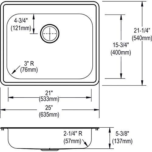 Dayton GE125213 Single Bowl Top Mount Stainless Steel Sink