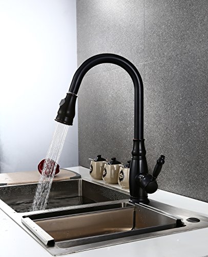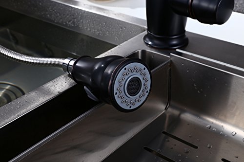 KALUD Commercial Style One hole Single Lever High Arc Single Handle Kitchen Sink Faucet with Pull Down Sprayer,Oil Rubbed Bronze