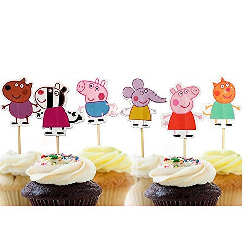 Astra Gourmet 24 Count Peppa Pig Cupcake Toppers Picks, Cake & Party Decoration