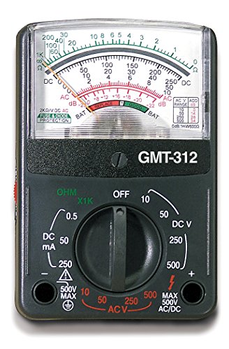 Gardner Bender GMT-312 Analog Multimeter, 5 Function / 12 Range, 300V AC/DC, for AC / DC Voltage & Current, Resistance, Continuity & Batteries