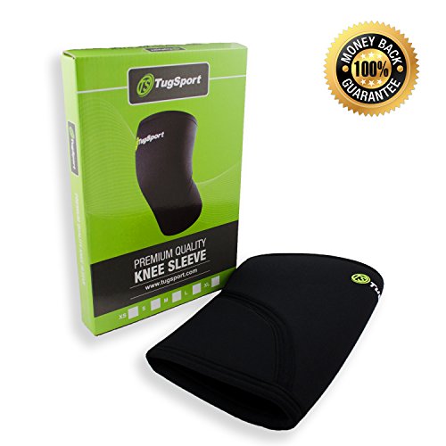 Knee Sleeve By TugSport - 7mm Neoprene Support For Weightlifting, Powerlifting, CrossFit, & Other Activities - Both Men & Women - One Sleeve - Black (Medium)