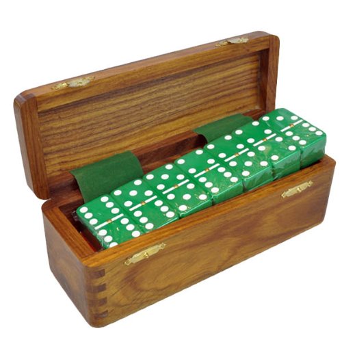 Domino Double Six Green in Dovetail Jointed Sheesham Wood Box - Jumbo Tournament Size with Spinners