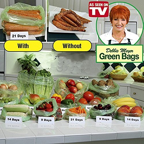 Help preserve the freshness and prolong the life of fruits, vegetables, baked goods and snacks with this revolutionary set of Debbie Meyer Greenbags. Debbie Meyer GreenBags are reusable up to 8-10 times, saving you money versus conventional produce bags. Every GreenBag is 100% BPA free. Designed to keep certain produce fresh for approximately 30 daysGreenBags keep produce fresh for up to 30 days, and reduce vitamin loss by up to 50% by preventing excess moisture. Keep food fresher, longer, to save money and reduce waste.
