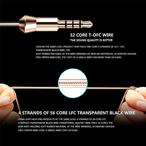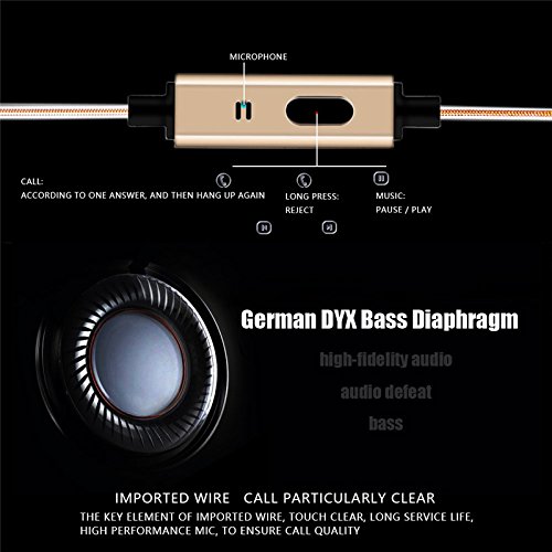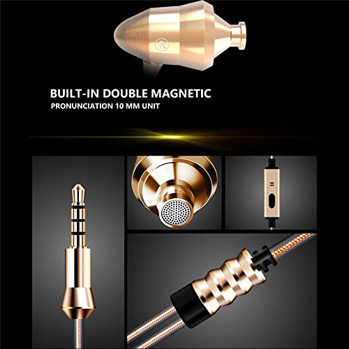 Full Metal Earphones, BearBizz T2 Bullet In-ear Earbuds Heavy Bass Earphones Hifi DJ Headphones with mic for iPhone Samsung Smartphones and Music Player (Gold)