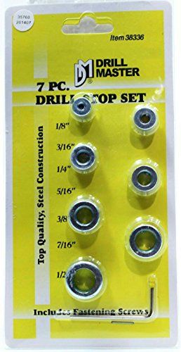 Drill Master 7 Piece Drill Stop Set to Fit 1/7 3/16 1/4 5/16 3/8 7/16 1/2 Inch Bits