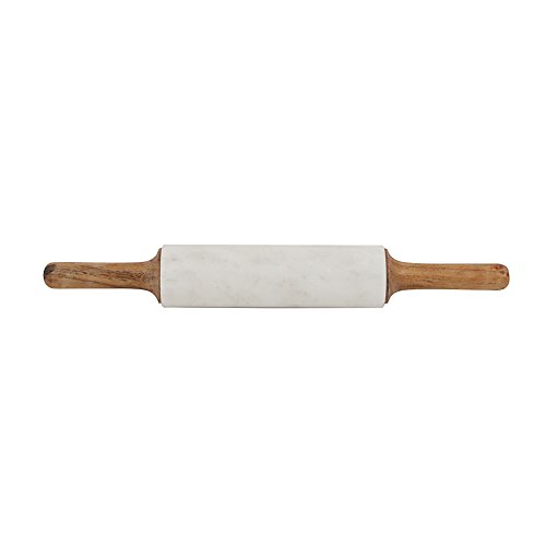 Creative Co-Op Marble Rolling Pin with Wood Handles, White
