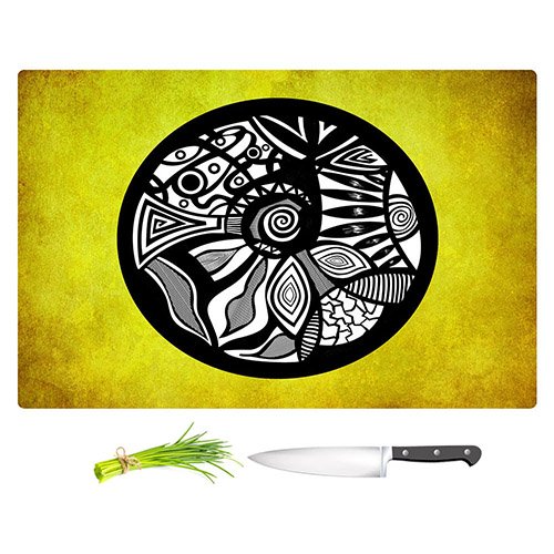 DiaNoche Designs CB-PomGraphicAbsCircleYell2 Pom Graphic Design-Abstract Circle Yellow Unique Kitchen Slicing Dicing Bar Artistic Decorative Cutting Boards from, Large 15" x 11"