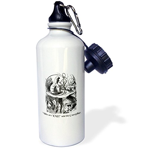 3dRose wb_193796_1 Who Are You-Smoking Caterpillar Quote From Alice in Wonderland Sports Water Bottle, 21 oz, White