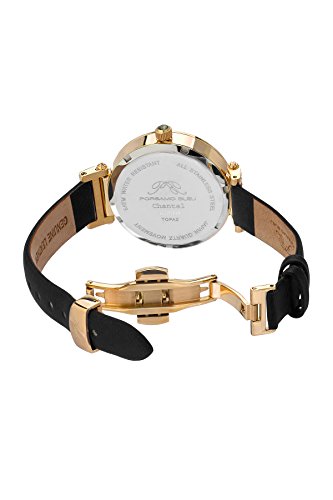 Porsamo Bleu Luxury Chantal Satin Covered Genuine Leather Women's Watch with White Topaz 673BCHL