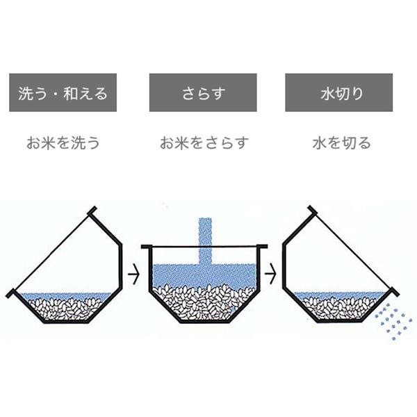 お米を洗う・さらす・水を切るが、流れでできる米研ぎに最適なボウルです。頑丈で、サビに強い18-8ステンレス製です。 |