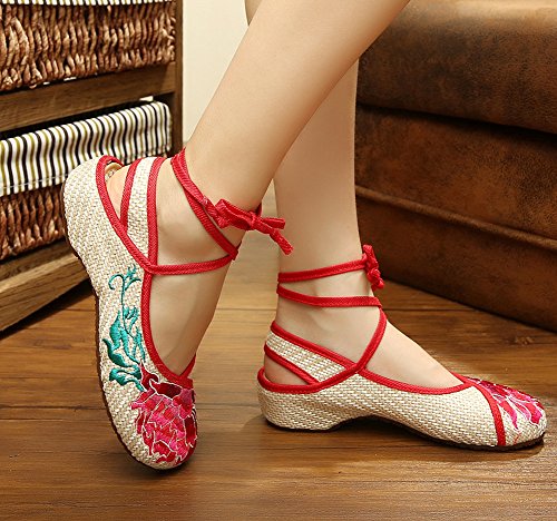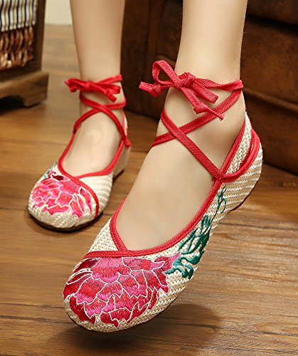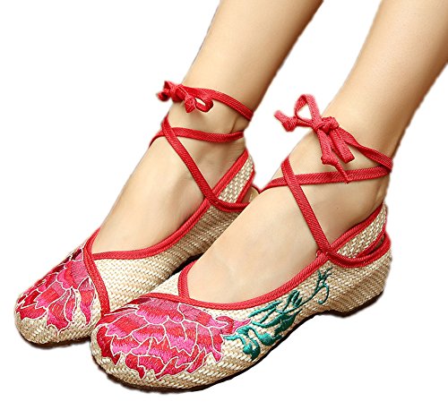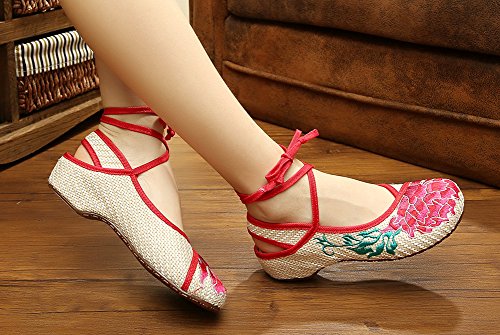 AvaCostume Womens Linen Embroidery Oxfords Sole Casual Flat Shoes