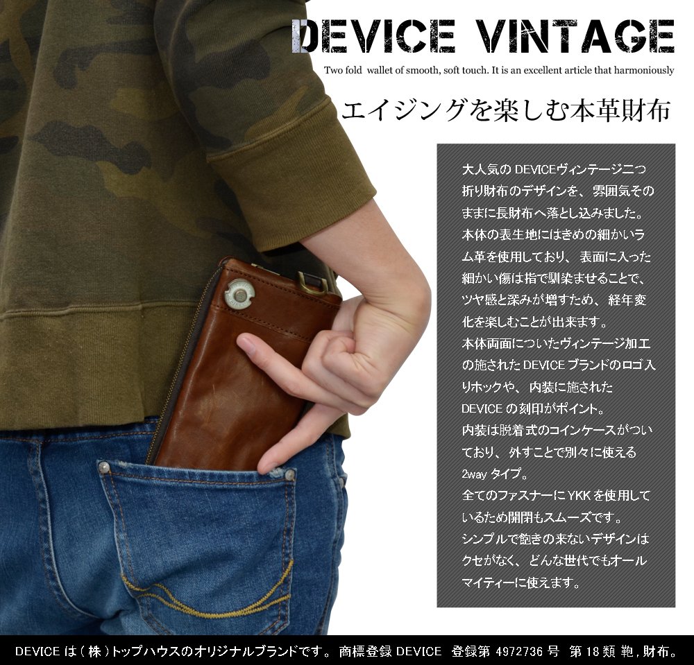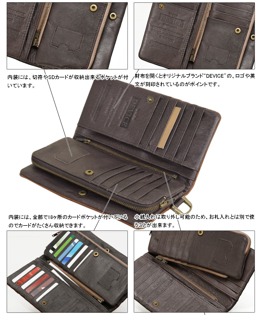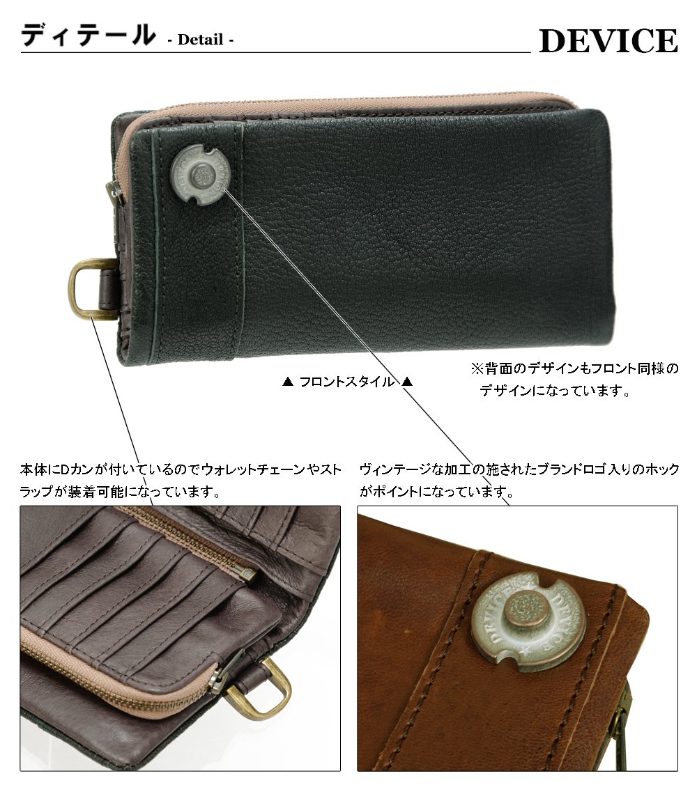 The design of the popular DEVICE vintage bi-fold wallet was dropped into the long wallet as it was.
