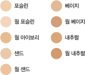 수분 코팅 파우더 파운데이션 인기 컬러 TOP 3 - 보통 피부보다 밝은 피부: 웜 포슬린