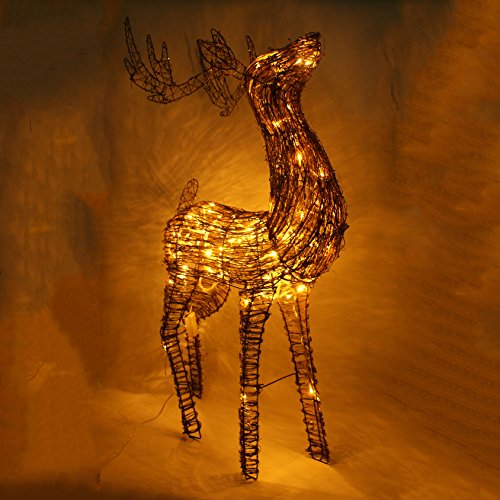 MomokoPeng 45" Led lighted Glittering Standing Buck Reindeer Lighted Christmas Yard Art Decoration - Clear Lights