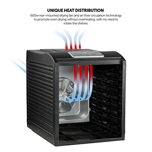 - DIGITAL THERMOSTATE AND TIMER help you choose your desire temperature and time. Up to 19.5 hours dry time. Choose drying temperatures from 95º F to 158º F. Countdown timer.