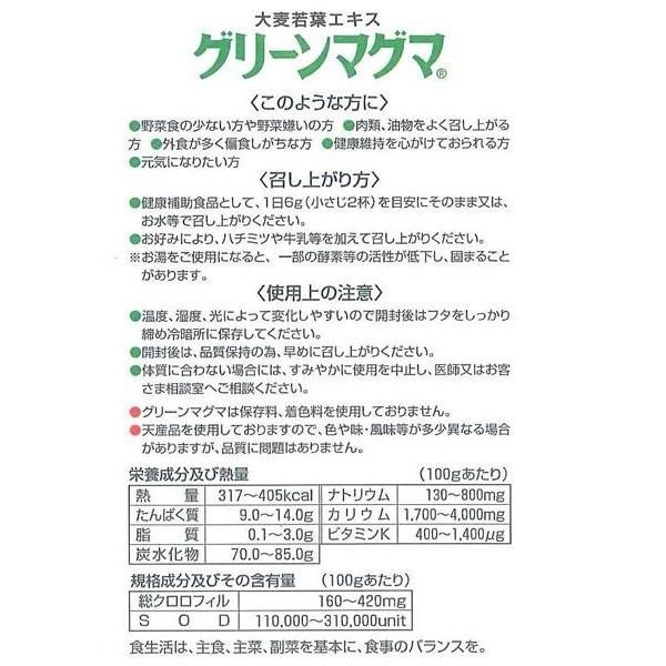| 原材料 | 名称:麦類若葉加工食品 大麦若葉、デキストリン、乳糖 |