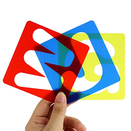 LETTER STENCIL: Package includes with 26 pieces of letter stencils and 10 pieces of number stencils in 3 different colors(yellow, blue, red), containing capital letters from A to Z and numbers from 0 to 9.