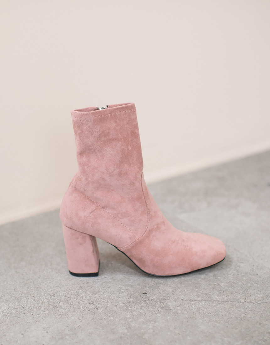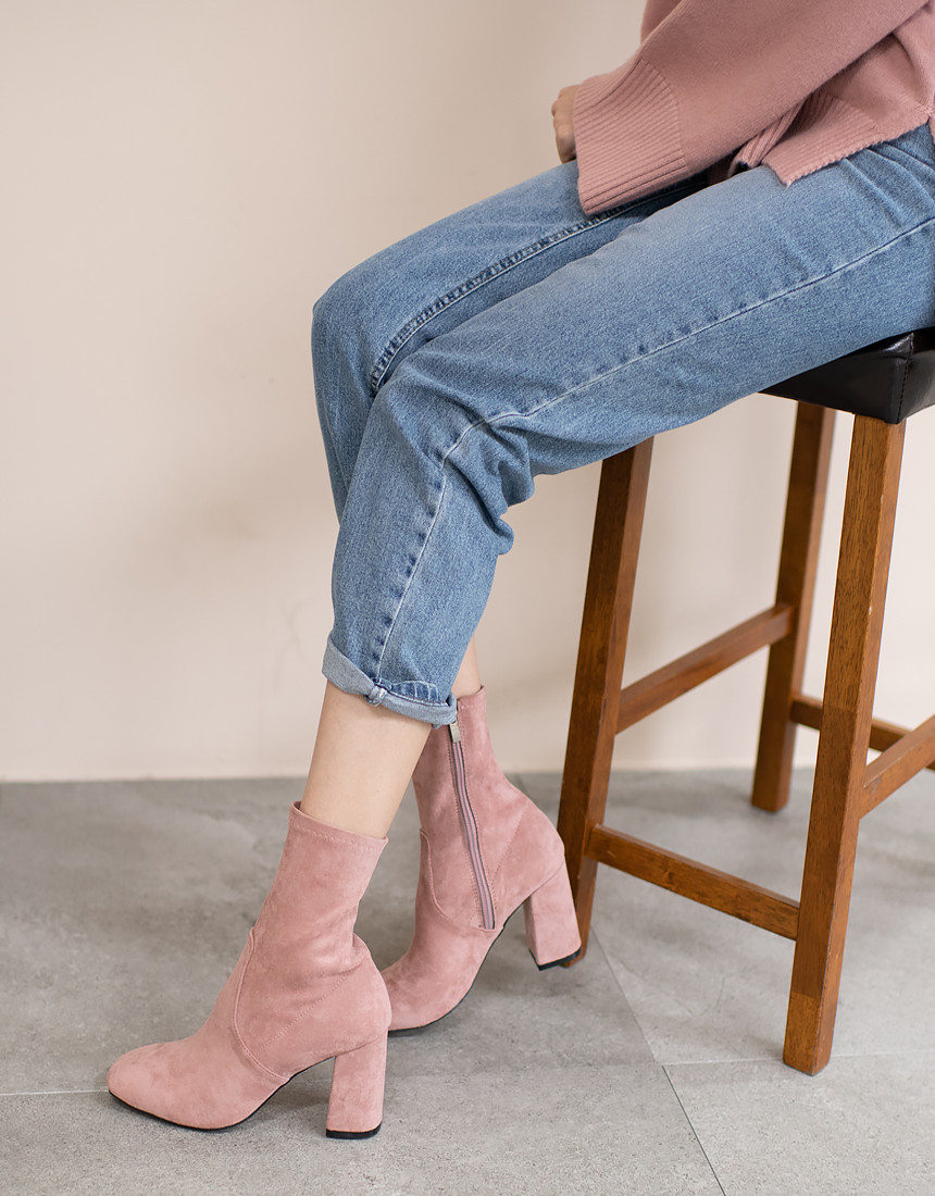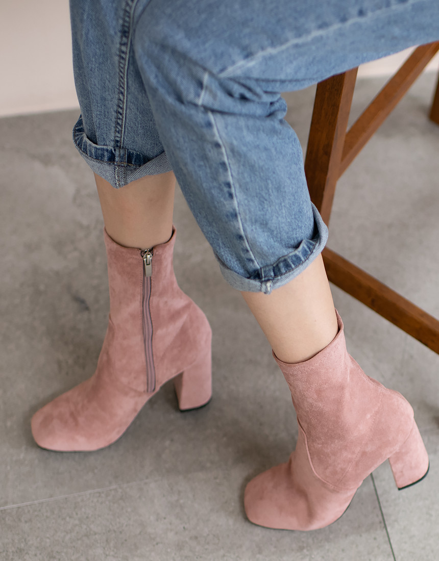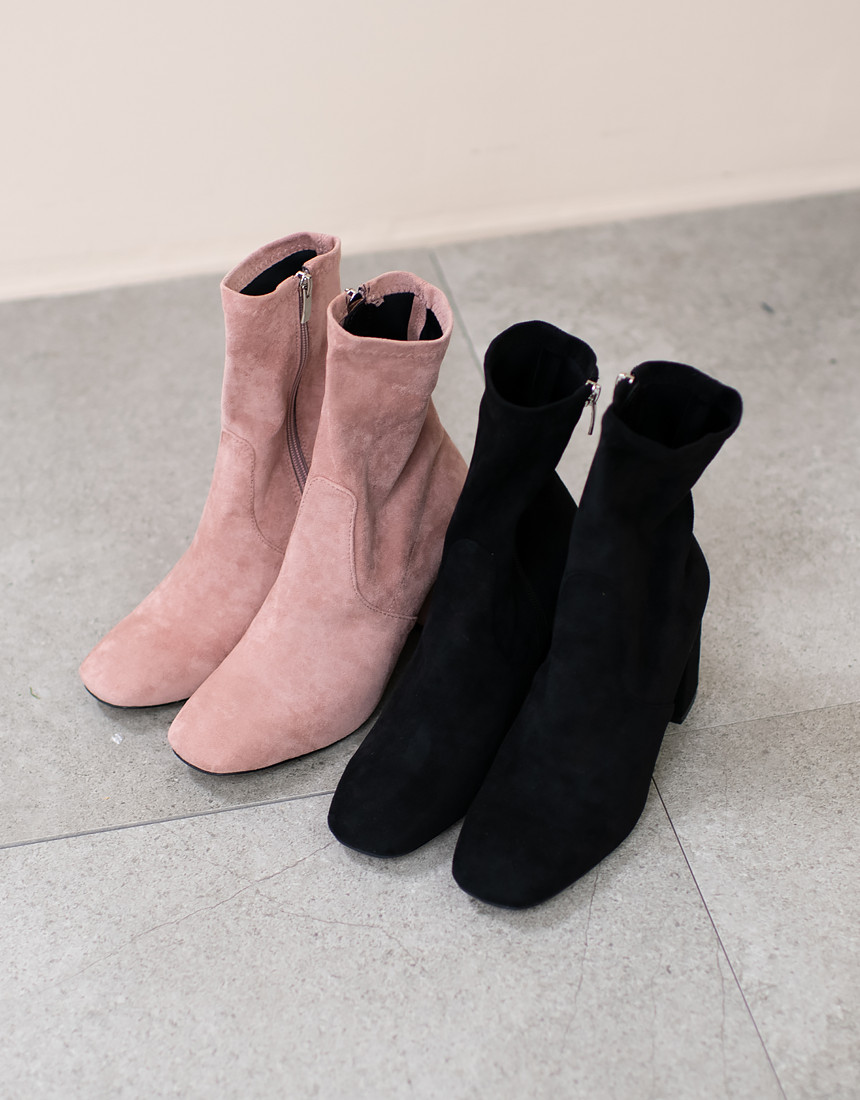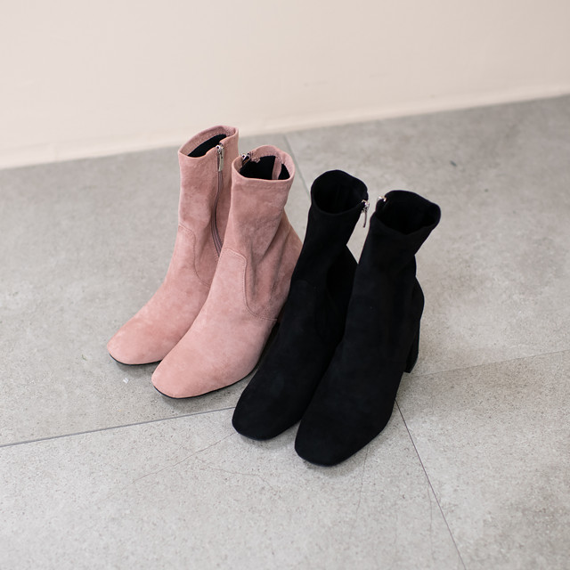 #스웨이드 사각코 앵클 미들힐 통굽 부츠