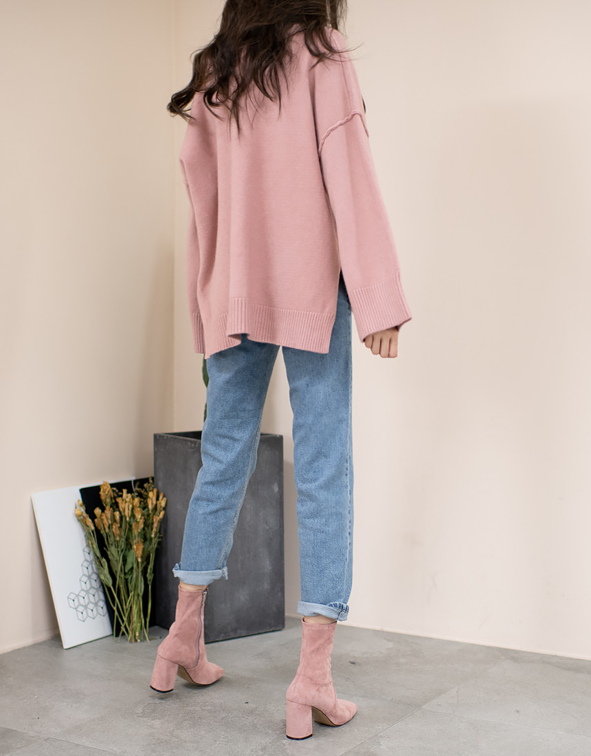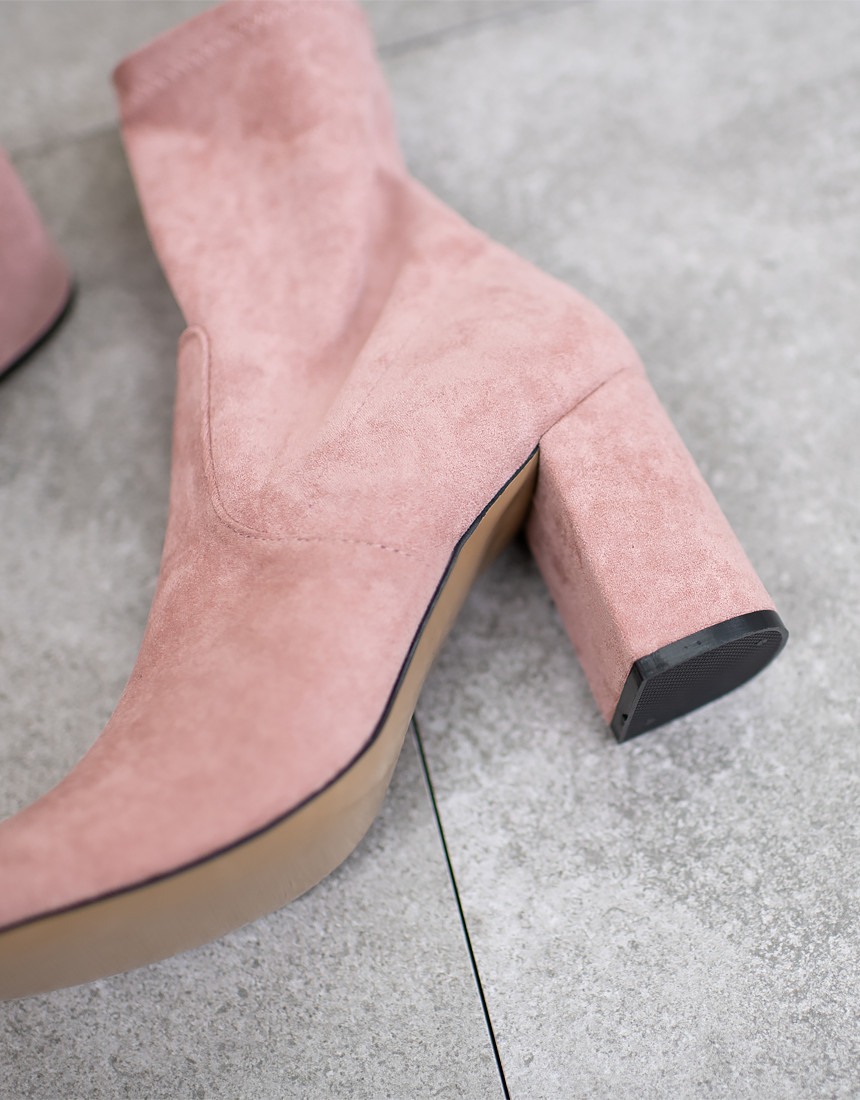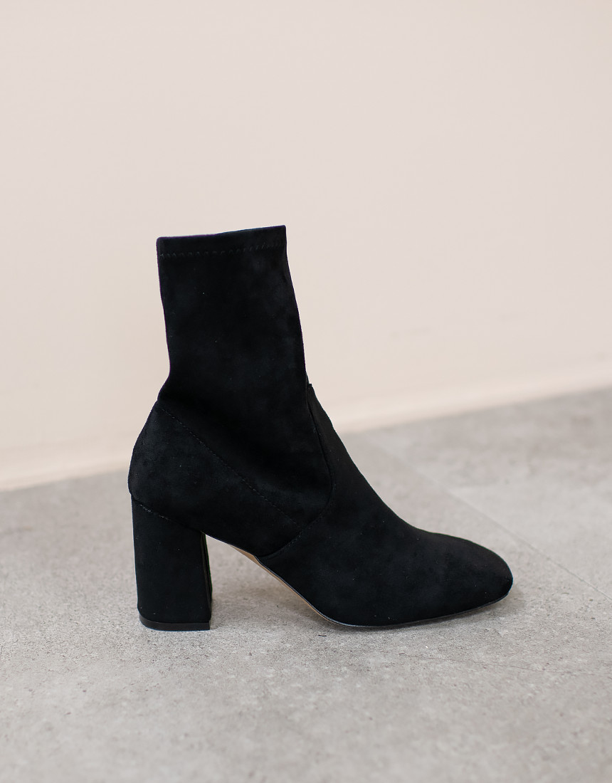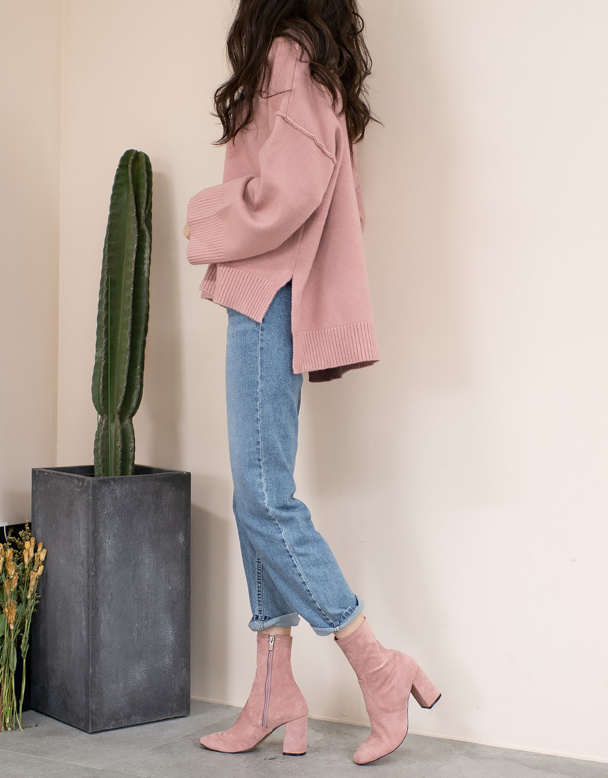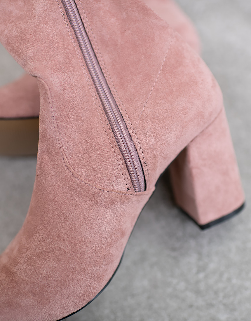 #스웨이드 사각코 앵클 미들힐 통굽 부츠