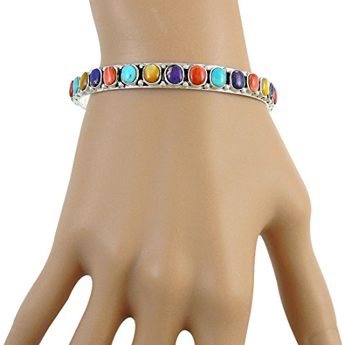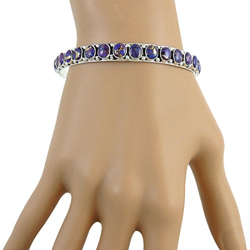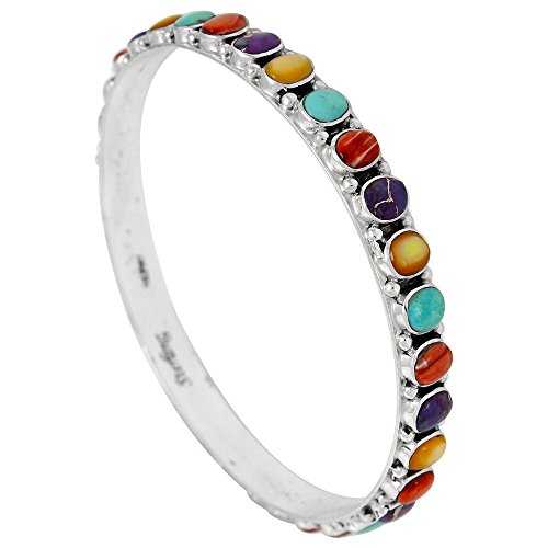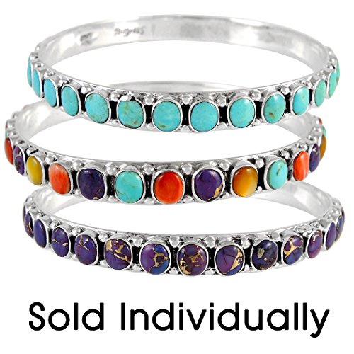 -. Title : Stackable 925 Sterling Silver Bangle Bracelet with Genuine Turquoise and Gemstones