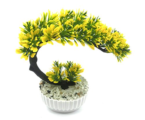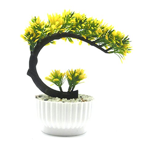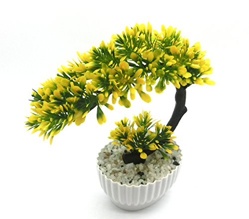 Pasha66 Fake Potted Plants Artificial Bonsai Plastic Pine Tree Home Office Tabletop Greenery Decor (yellow)