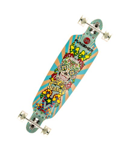 -. Binding : Sports -. Brand : Punisher Skateboards -. Color : Blue/Yellow -. Department : unisex-adult -. EAN : 0725103900193 -. Feature : 40-Inch x 9-Inch 7-Ply Full Canadian Maple Longboard with Step Through Drop Down Deck / Concave Deck Features Day of the Dead Themed Graphics / 7-Inch Heavy-Duty Polished Trucks and Bases; 76mm x 53mm Poly Urethane Cast Wheels. / ABEC-9 Bearings for High Speed Riding; Heavy Duty Grip Tape / Formaldehyde FREE Wood! ASTM and CPSC compliant -. Label : Bike USA -. Manufacturer : Bike USA -. Model : 9019 -. MPN : 9019 -. NumberOfItems : 1 -. PackageQuantity : 1 -. PartNumber : 9019 -. ProductGroup : Sports -. ProductTypeName : OUTDOOR_RECREATION_PRODUCT -. Publisher : Bike USA -. Size : 40-Inch -. Studio : Bike USA -. Title : Punisher Skateboards Day of the Dead Drop-Through Canadian Maple Longboard Skateboard with Concave Deck, Blue/Yellow, 40-Inch -. UPC : 725103900193