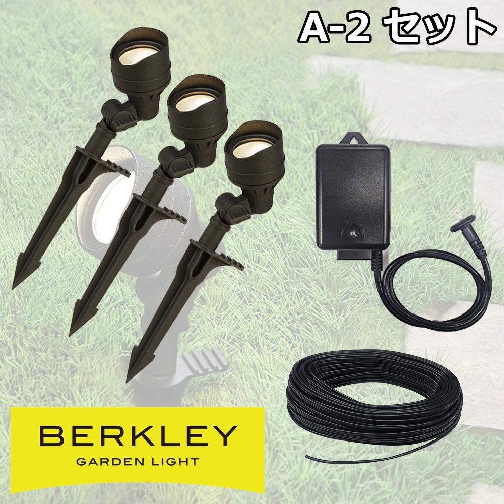ミディアムな範囲をやわらかく照らす防雨仕様のスポットライト3本と、ご家庭の電圧100Vから12Vへ変換する電源トランスと、トランスからライトへ配線するための屋外用ケーブルがセットになっています。 |